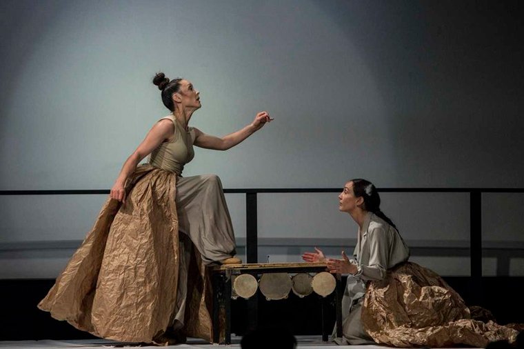 De bendecido corte minimalista, apenas cuentan consigo mismas y un par de elementos más (aplauso merecido al diseño de luces y el de vestuario, creado por la propia Florencia, y confeccionado por Carmelilla), todos ellos de carácter orgánico, como esas faldas de papel kraft que las convierten en dos meninas inclinándose en una pavana fingida. Chocan en tiernos abrazos de niñez que desemboca en una guajira delicatessen de plumas azules. Aquí, en este rincón machadiano, hay que morir.