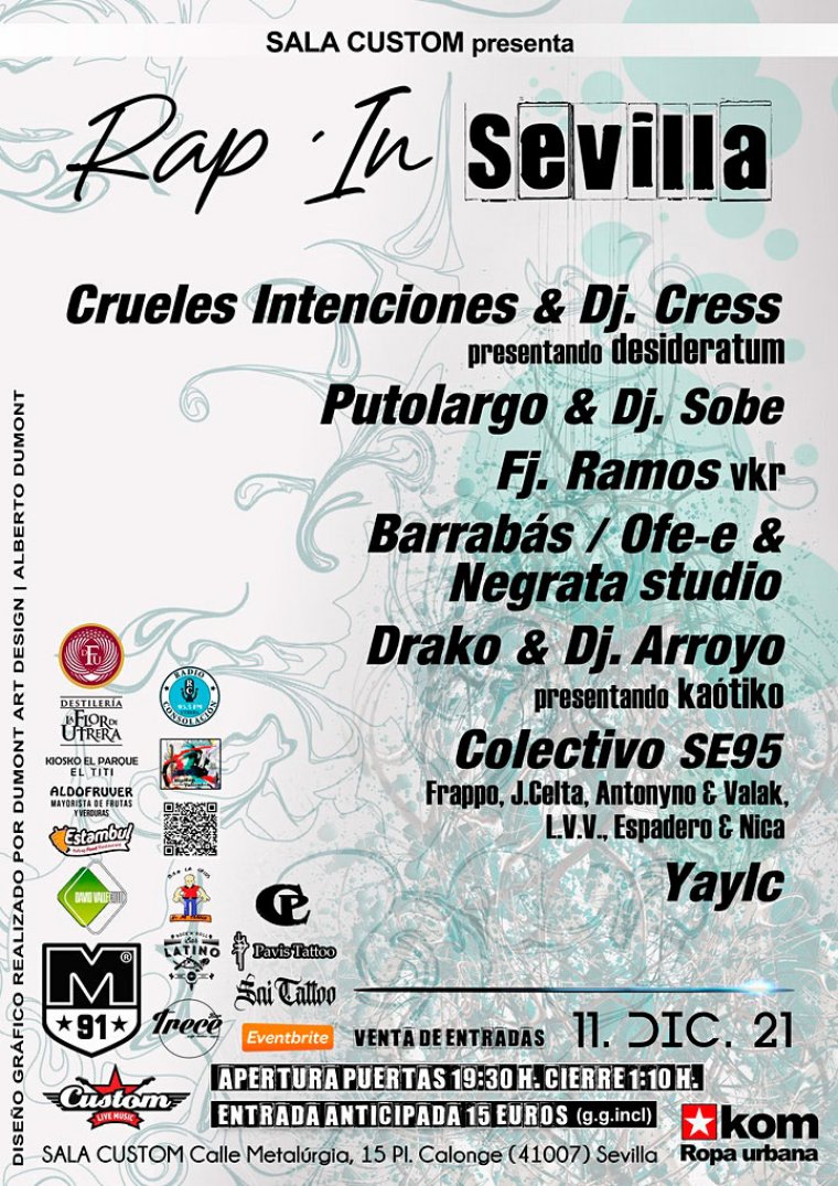 RAP'IN SEVILLA Festival de Rap en Sala Custom (Sevilla) Celebramos la 1°Edición con Precios Lowcost y Muchos Artistas, Mira que Cartelazo...