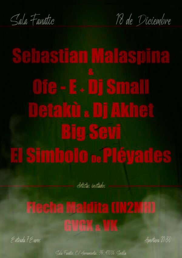 Evento de Rap underground sevillano donde se darán cita en la Sala Fanatic Ofe-E Y Sebastian Malaspina junto a Dj Small,