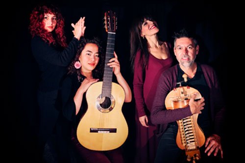 Emilio Villalba dirección musical, vihuela de arco, laúd, guitarra barroca, zanfoña / Sara Marina adufe, bendir, narraciones / Lola Yang guitarra flamenca / Graci Rodríguez cante