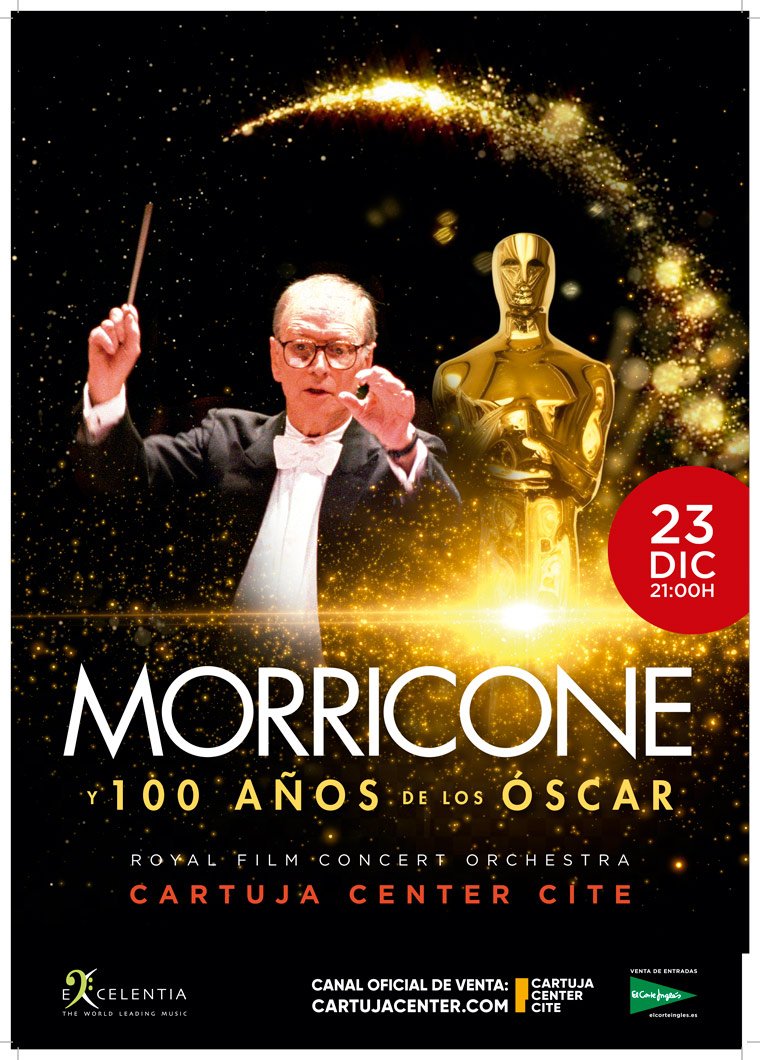 El 23 de diciembre no te pierdas el concierto homenaje a Morricone y las bandas sonoras más famosas premiadas en los Óscar de Hollywood. Muy cerca de cumplirse los 100 años de los Óscar, haremos un recorrido por las grandes obras de cine de todos los tiempos así como las bandas sonoras más famosas de Ennio Morricone como Cinema Paradiso, la Misión, Érase una vez en América entre otras muchas.