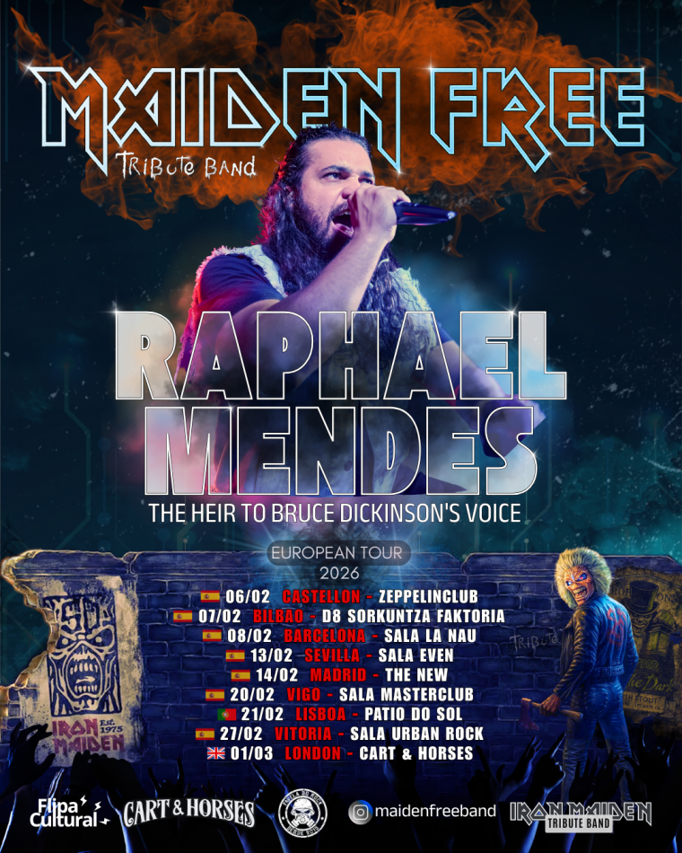 Maiden Free, la banda tributo a Iron Maiden, llega con toda su fuerza de la mano del increíble Raphael Mendes, el vocalista viral que recrea a la perfección la voz de Bruce Dickinson y conquista a cientos de miles de fans en todo el mundo.