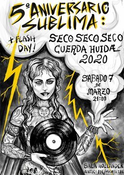 CONCIERTO ANIVERSARIO SUBLIMA Evento concluido Sab 7 Mar 21:30h Sala Hollander Sevilla Ver mapa de localización del lugar CONCIERTO ANIVERSARIO SUBLIMA: SECO SECO SECO CUERDA HUIDA 2020