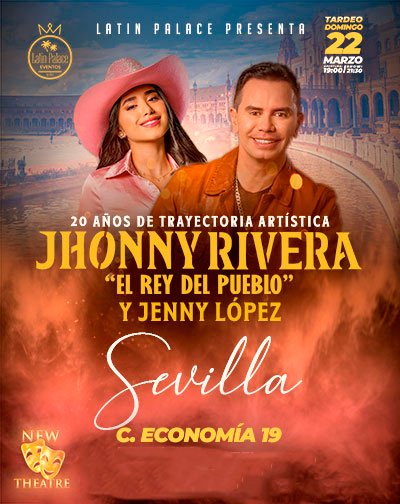 Concierto de Jhonny Rivera "El Rey del Pueblo" y Jenny López que se celebrará en la sala New Theatre de Sevilla.