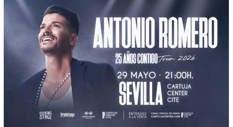 “25 años Contigo” es la gira con la que Antonio Romero celebra sus 25 años de carrera artística, un espectáculo concebido como un viaje musical lleno de emoción, recuerdos y agradecimiento al público que ha acompañado su trayectoria durante todo este tiempo.
