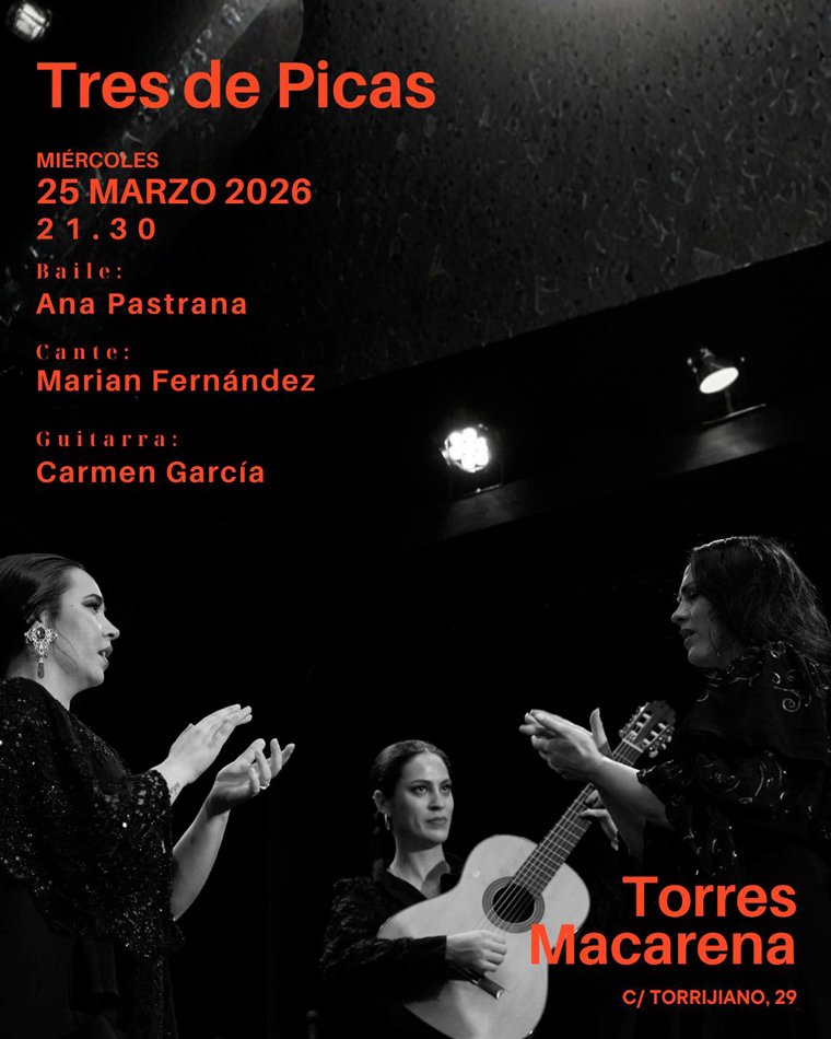 Tres de Picas Mié 25 Mar 21:30h Peña Flamenca Torres Macarena de Sevilla Sevilla Ver mapa de localización del lugar