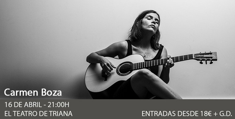 Carmen Boza llega hasta el Teatro de Triana, para ofrecernos un concierto único, en la intimidad del escenario. Llega al corazón cultural trianero después de que el pasado 29 de julio del 2020 viese la luz “La Grieta”, su trabajo más reciente compuesto y producido por Carmen. Una canción oscura y dulce que explora la incertidumbre del punto ciego y, de alguna manera, es una reafirmación en sus intereses vitales y una proyección de su propia mente e inquietudes. Carmen Boza es una compositora, guitarrista, productora y cantante en La Línea de la Concepción (Cádiz). La música de Carmen Boza se nutre de su fuerte vínculo con la guitarra, el cual lleva explorando desde los 15 años. El interés por muchas propuestas de la llamada música comercial, al tiempo que por muchos otros proyectos de corte más alternativo, desemboca en el torrente de influencias que se aprecian en las composiciones de la gaditana. La cantautora esta considerada como una de las propuestas femeninas españolas más interesantes y con más proyección de los últimos años. Carmen empezó su carrera musical subiendo vídeos a la plataforma YouTube donde poco a poco fue consolidando una gran base de público que a día de hoy sigue sus pasos allá por donde va. El boca a boca hizo que su música empezara a sonar en pequeños locales del circuito de cantautores como, La Botica en Málaga, Café Pay Pay en Cádiz, Sala Galileo de Madrid… En 2011, y después de muchos años componiendo canciones y mostrándolas a su público virtual, decide grabar un EP llamado “Lapislázuli” incluyendo 5 canciones. Un trabajo de voz dulce, música envolvente y letras poéticamente elaboradas. En 2012 recopiló en un álbum grabado en su casa todas las canciones que había ido subiendo hasta el momento en su canal de Youtube @rollitosdeprimavera , que publicó gratuitamente online. Ya en el año 2014, y tras una exitosa campaña de crowdfunding con la cual recaudo el 120% de lo requerido en tan solo ocho horas, publica La Mansión de los Espejos, su primer trabajo de larga duración compuesto por 11 canciones distribuidas de manera premeditada y eficaz. Más recientemente, en 2018, en una continua búsqueda de su sonido, Carmen Boza toma el mando de la producción y arreglos para “La Caja Negra”, su segundo trabajo de estudio. Un álbum copado de riffs de guitarra y melodías pegajosas que dan soporte a textos oscuros e introspectivos, donde el oyente atento es testigo del tránsito de la artista millenial, por las complejidades de la vida moderna. Carmen lanzó este nuevo trabajo desde su propio sello discográfico “Etiqueta Negra” logrando ser el segundo disco más vendido en España, sin duda un merecido reconocimiento a un trabajo minucioso y constante desde la más absoluta independencia. Es en 2019, y presentándolo en exclusiva en la mítica sala La Riviera de Madrid, cuando la cantautora lanza el single “Un golpe se suerte” grabado, producido y mezclado por ella misma en su habitación, sin filtros, Donde la artista coquetea con el mundo del sampleo y se consolida como una de las propuestas femeninas más polivalentes y versátiles de la industria independiente. . .