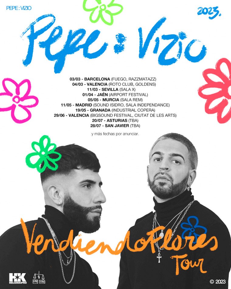 Pepe : Vizio viajan por España para traernos la alegría con su gira «Vendiendo Flores». En ella podremos cantar y bailar todos sus éxitos y descubrir lo que nos espera este año con su música. El dúo granaíno formado por Pepe y Vicente que ahora escuchas en todas partes son dos artistas polifacéticos unidos por la música y la amistad. Después del éxito generado con «El Patio» junto a Delaossa, vuelven con «Te Darás Cuenta», canciones que podrás disfrutar en su conciertos.