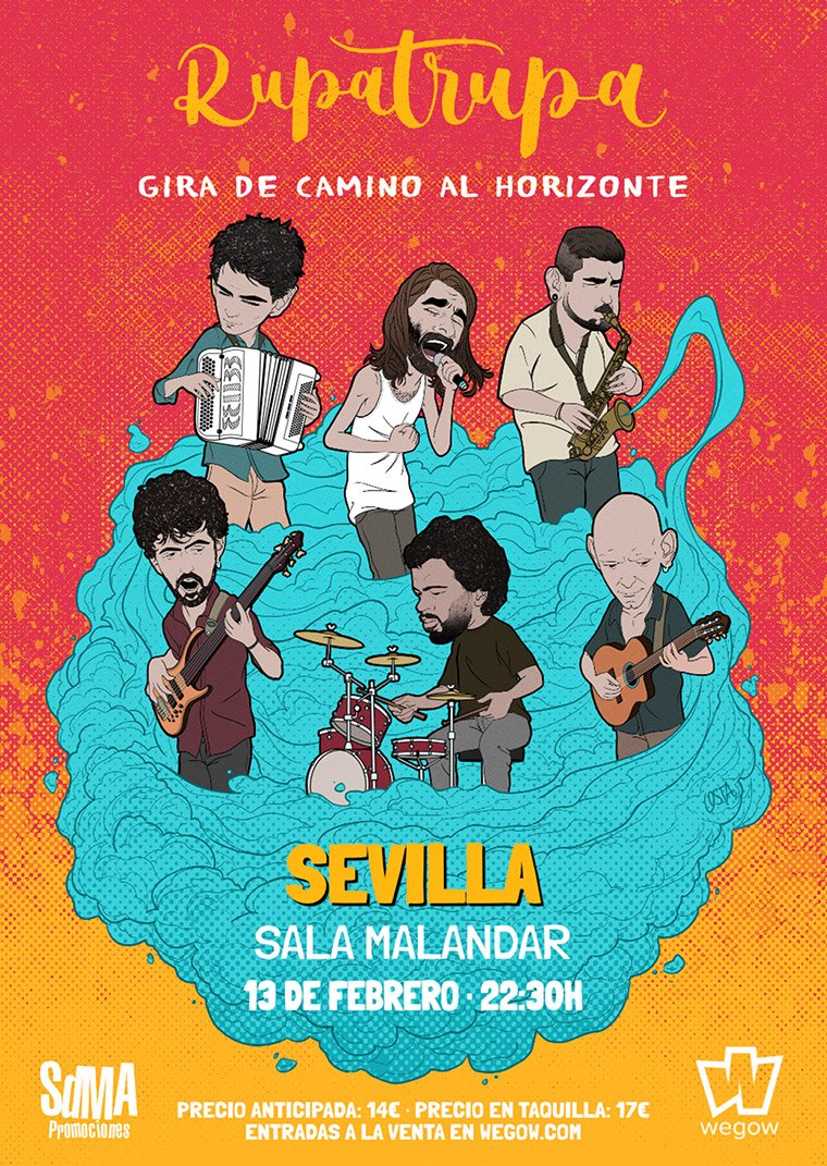 “¡Rupatrupa vuelve a la carretera! El proyecto afincado en Tenerife sale de nuevo de gira; miles de kilómetros por delante y unas ganas locas de volver a dejarse la piel en cada escenario. En esta gira, “”De camino al horizonte””, Rupatrupa quiere seguir demostrando ser un proyecto maleable donde todo cabe.