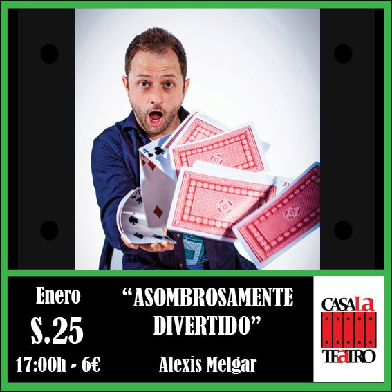 Espectáculo de magia y humor, mezcla de actos asombrosos, efectos visuales, sketches, siempre con mucho humor, ironía y de vez en cuando un punto de ternura. Es un show para toda la familia, tanto niños como mayores pasarán un momento memorable en la compañía de este mago sevillano. Pasa una hora asombrosamente divertida con Alexis Melgar.