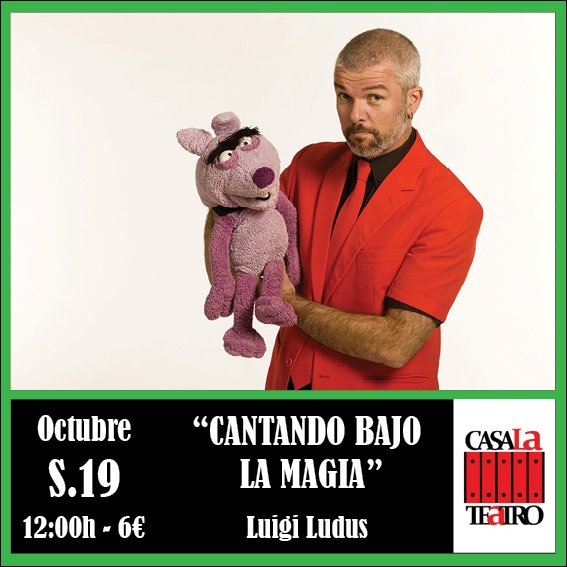 “CANTANDO BAJO LA MAGIA” Un espectáculo de magia donde la música toma un papel muy importante. Juegos con instrumentos musicales diferentes como las campanas de hotel, juegos de magia cantada como los “aros rapeados”, un perro de peluche que no solo es poeta, sino que también canta. Un espectáculo ideal para que los más jóvenes de la familia se adentren en el mundo del teatro por una puerta mágica y divertida.