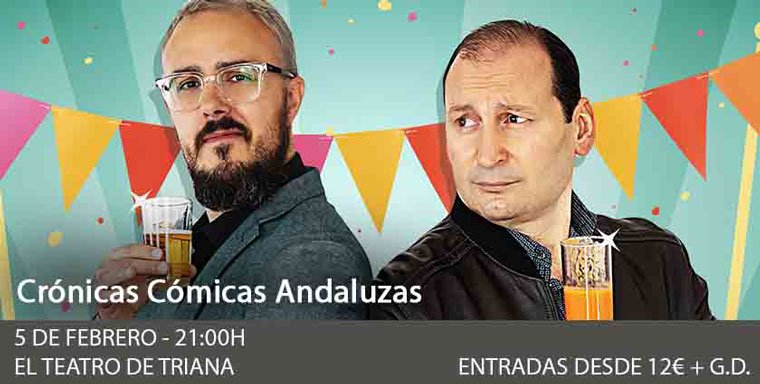 Crónicas Cómicas Andaluzas es una comedia teatral llena de situaciones divertidas, canciones, sketches, audiovisuales, improvisación y sobre todo un humor para todos los públicos. ¡Que se preparen los españoles! Sin daros cuenta vais a estar involucrados en esta parodia de la vida real que va a triunfar de norte a sur y de este a oeste.