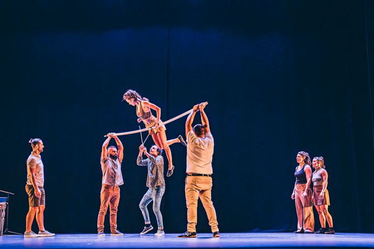 Al más puro estilo “sky-is-the-limit” llegan los valencianos Spinish Circus a prometer y a dar una buena dosis de adrenalina. Todo un viaje circense, que es también un viaje personal hacia lo desconocido, hacia los límites. Una historia más evocadora que explícita, en la que cada espectador podrá encontrar su significado, que sirve de contexto para un encuentro de trayectorias e identidades, inspiradas en el concepto del viaje, de la movilidad y el nomadismo que el ser humano lleva dentro como un motor. El mismo motor que nos empuja a ir más allá y al reto, en este caso acrobático, con siete personas en escena y elementos tan llamativos como el de la barra rusa.