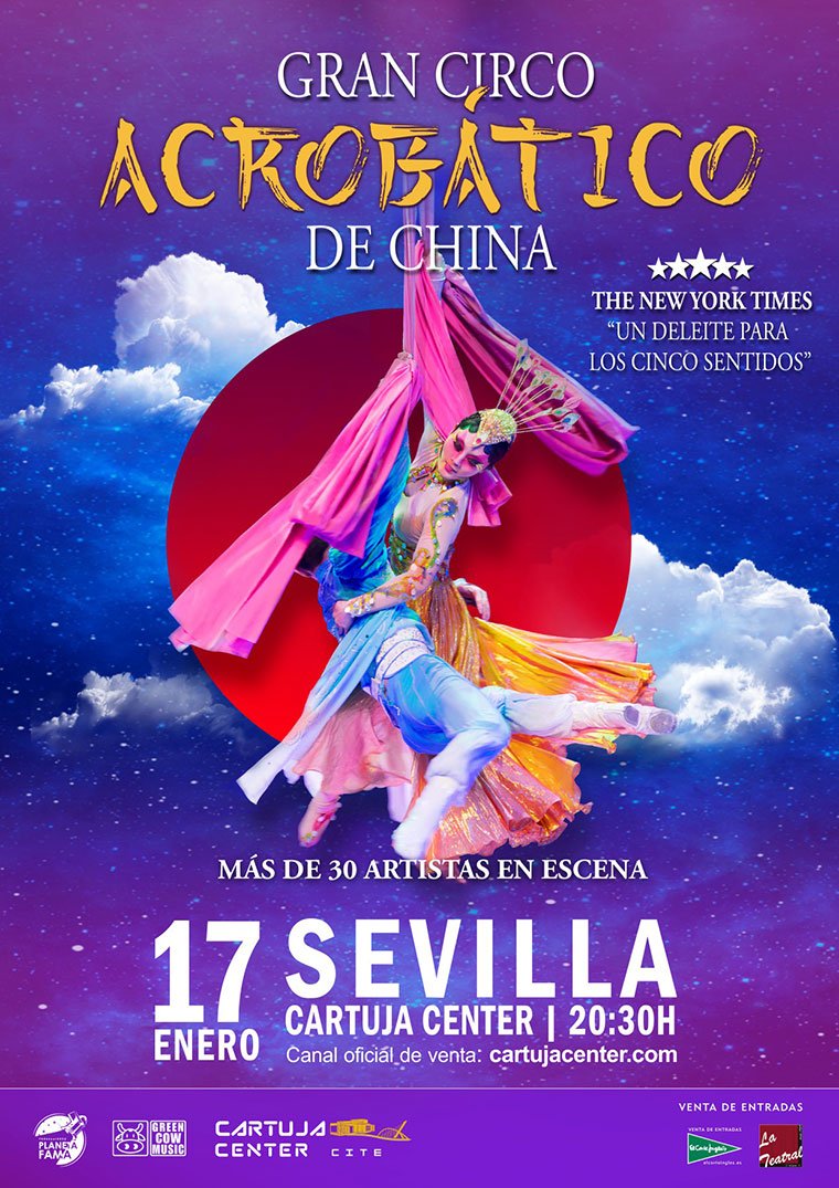 El famoso y prestigioso Gran Circo Acrobático de China llega a Sevilla. Un deleite para los cinco sentidos para disfrutarlo en familia, calificado como único en el mundo. Más de 30 artistas en escena, la mayoría medallistas olímpicos y algunos procedentes del Cirque du Soleil, invitarán al público a viajar junto al protagonista, un niño soñador que entra en un mundo de fantasía.