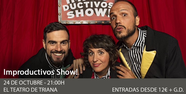 Todos preparados porque la función va a comenzar. Luces, música y telón arrriba... Improductivos Show! da comienzo. Un derroche de energía en forma de escenas improvisadas, dónde los actores lo darán todo para llevar las ideas, propuestas y participación del público, a la realidad. Mucha comedia creada en el momento a un ritmo vertiginoso... ¡Atento! Las historias que vivirás esta noche, nunca han sido contadas... ¡Y no volverán a existir más allá de ese momento! Improductivos Show! nace de la necesidad de acercar el teatro a las personas. Se hace, además, con un espectáculo donde el espectador adopta el rol activo y partícipe. Como una manera de volver a remarcar el acto efímero del género teatro, proponen estos "Improductivos" que cada espectáculo sea diferente, y que dichas diferencias aludan a que nuestra audiencia sea cambiante. Aunque son muchos los que repiten, podríamos decir que lo que traen consigo cada vez es distinto. Una serie de escenas improvisadas creadas en el momento por el elenco, a través de tres intérpretes, y con una técnica improvisadora, a nivel audiovisual, juegan con la imaginación del público para crear ficciones basadas en las propuestas e ideas del público. . .