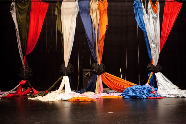 ES EL TURNO DE MIET WARLOP Y SU ESPECTÁCULO INHALE DELIRIUM EXHALE, UN PODEROSO TORBELLINO DE DANZA, REALIZADO POR UNA COMUNIDAD DISPAR DE SEIS INTÉRPRETES, MÚSICA DE DEEWEE Y 1.500 METROS DE TELA, QUE NOS OFRECEN UNA PUESTA EN ESCENA PREPARADA PARA AFRONTAR LOS MIEDOS, DESEOS Y SECRETOS.
