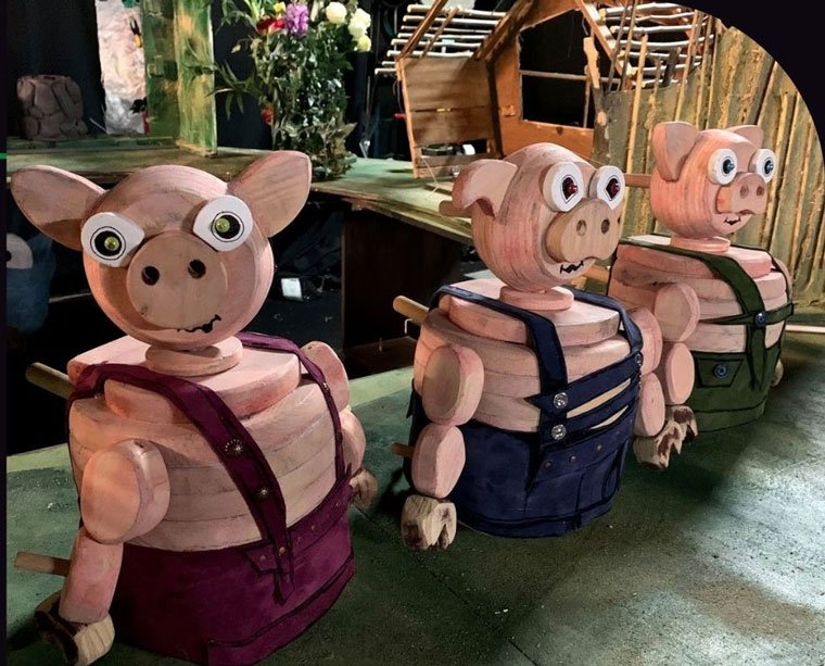 Narra la historia de Paquito, Manolito y Joselito, tres cerditos hermanos muy diferentes entre sí. Uno es trabajador, otro hace lo justo, y el último solo quiere dormir y vaguear. Todo va bien hasta que aparece un pájaro carpintero que les trae una terrible noticia: ¡ha aparecido un enorme lobo feroz en el bosque!. Los 3 cerditos deciden entonces construir una casa, pero sin ponerse de acuerdo cada uno elige su propio camino. La hermandad, la bondad de ayudar a quien lo necesita y el trabajo arduo y en equipo son valores presentes en este espectáculo.