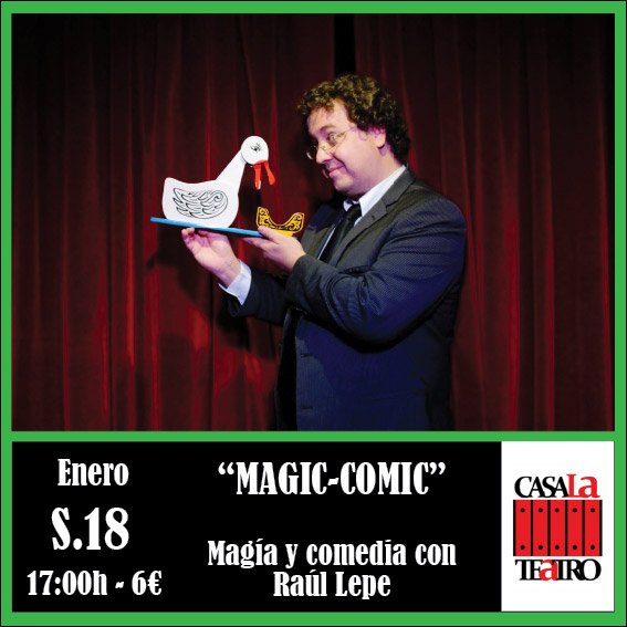 El título de este espectáculo es perfecto porque describe exactamente lo que vamos a ver: números mágicos con grandes dosis de comedia. A lo largo del espectáculo, Raúl Lepe nos sorprende con efectos mágicos de fuerte impacto pero a través de la risa. En la línea de espectáculos de magos emblemáticos como Juan Tamariz, Pepe Carrol, Mag Lari, David Williamson, Mac King, etc… Divertido, entretenido, sorprendente y mágico.