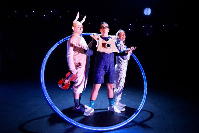 El circo, la música en directo, la luz y las formas circulares como alegoría del espacio exterior, son los elementos que hacen de este viaje a través de la fantasía un recorrido para descubrir que en la oscuridad ocurren las aventuras más increíbles.