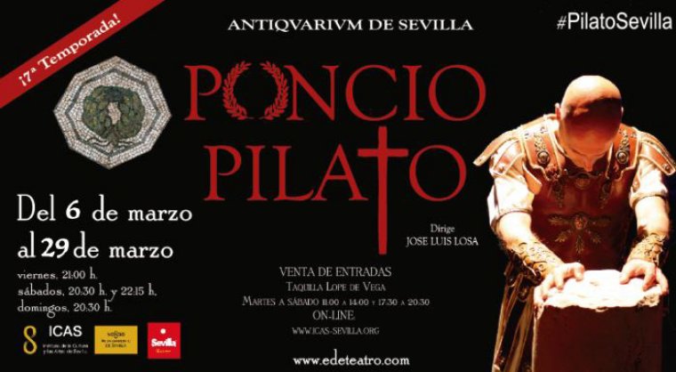 PONCIO PILATO es uno de los personajes más famosos de la historia de la humanidad, conocido universalmente, o eso creemos. Pero ¿qué sabemos realmente del procurador romano en Judea, de sus circunstancias políticas y personales? ¿Hasta qué punto éstas influyeron en su decisión en el polémico juicio a Jesús de Nazaret? EdeTeatro trae de nuevo al Antiqvarivm de Sevilla éste exitoso espectáculo sobre las horas más difíciles del hombre que pudo cambiar la historia.