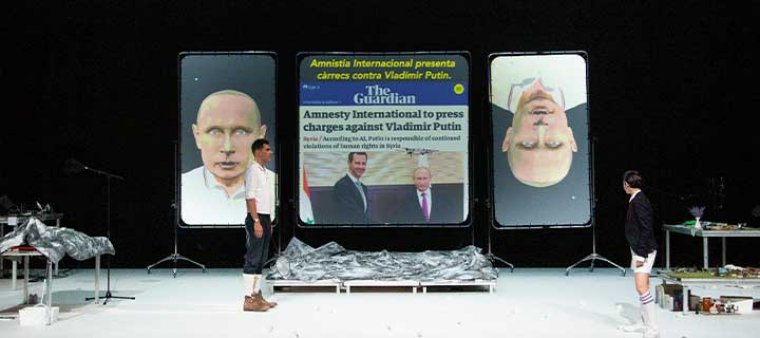 La pieza habla de la confianza, y una de las cuestiones que aborda es cómo se construye esa confianza. Lo hace a partir de la figura de Vladímir Putin y una pequeña disertación filosófica de bar alrededor de la idea de que no existe la verdad y de que la confianza se ha de revisar continuamente. La cuestión es que no eligieron a Donald Trump para hablar del tema porque es un payaso, según la compañía, en cambio Putin es más fino, opaco, puede decir burradas desde una inteligencia más sibilina que le hace más rico.