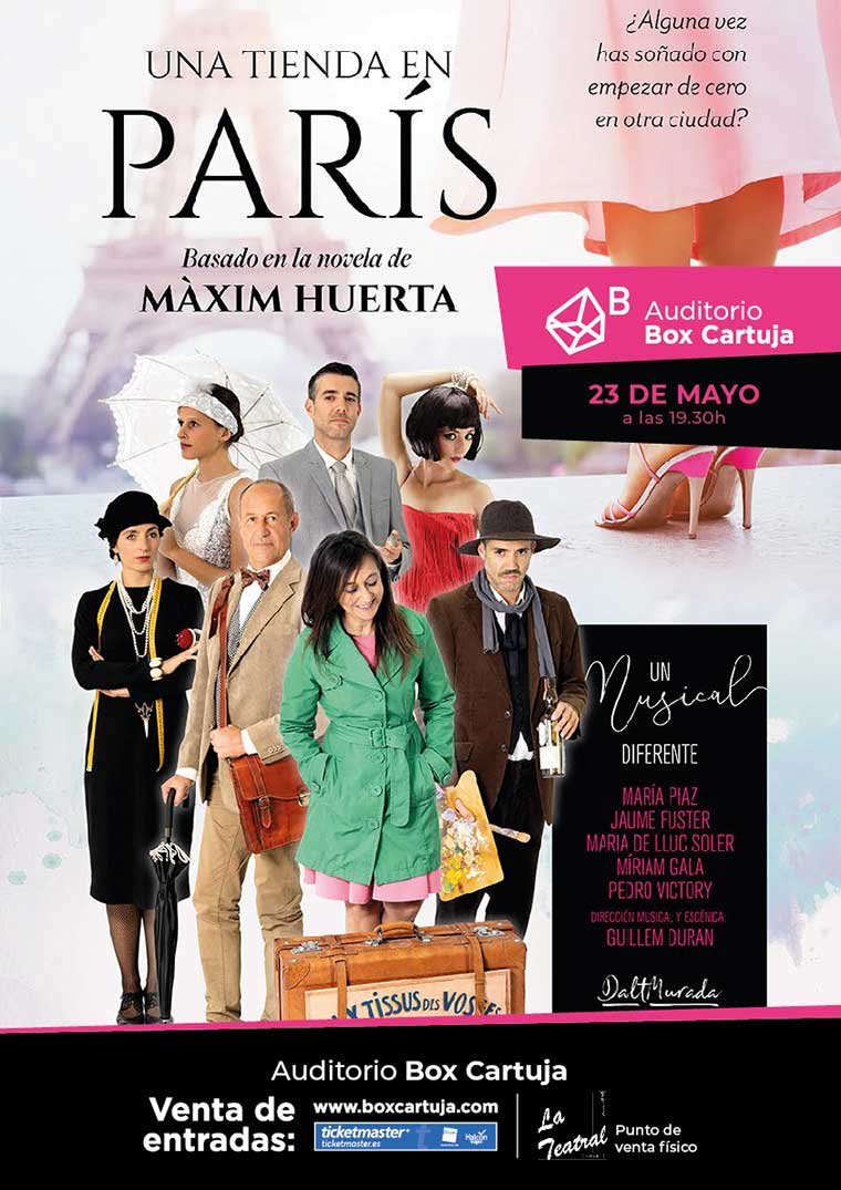 Una tienda en París es un espectáculo musical basado en la novela del escritor, periodista y presentador Màxim Huerta, y transcurre entre los felices años 20 parisinos y la actualidad, uniendo las vidas de dos de sus protagonistas, Teresa y Alice.
