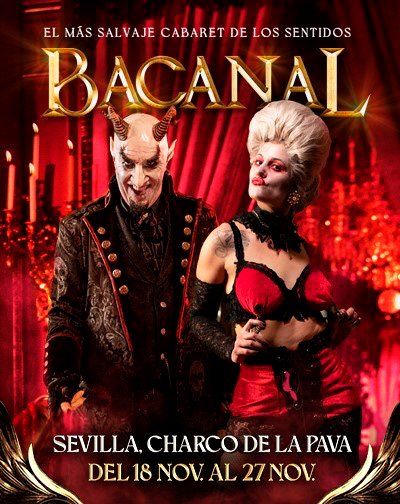 Bacanal es un show único, irreverente y sensual, que llega para avivar los instintos más básicos del ser humano, sus deseos más ocultos y dar rienda suelta a los placeres más carnales.