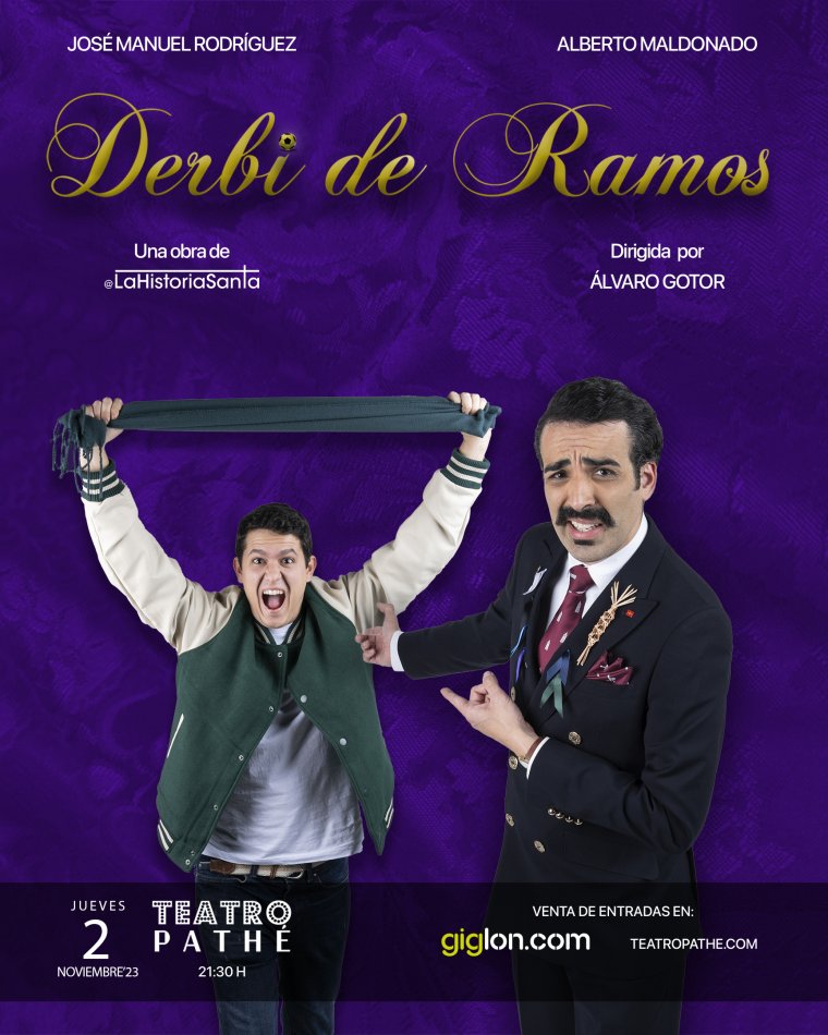 Derbi de Ramos Jose Manuel Rodríguez y Alberto Maldonado Derbi de Ramos Evento concluido Jue 2 Nov 2023 21:30h Teatro Pathé Sevilla Ver mapa de localización del lugar