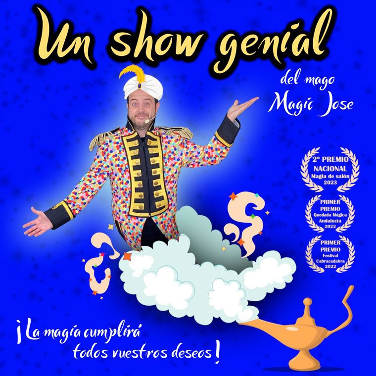 Seguro que siempre has querido encontrarte una lámpara mágica para pedirle un deseo… ¡Pues concedido! Tanto peques como adultos disfrutarán el sueño de “Magic Jose”: ¡ser un mago! Pero no estará solo, el genio de la lámpara le ayudará a todos los juegos de magia que se le vayan ocurriendo que serán de todos los tipos: magia con redes sociales, juegos musicales, con mascota. Y todo el espectáculo es ¡muy participativo! Sin duda, un show genial para cumplir todos vuestros deseos de una forma muy mágica. Atrévete a descubrir el genio tan genial de este show… ¿Quién será?