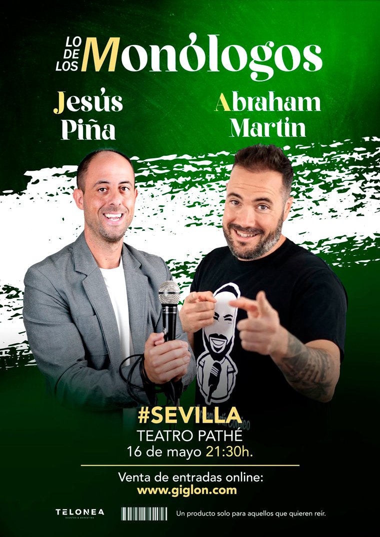 LO DE LOS MONÓLOGOS ANDALUCES Jesús Piña y Abrahan Martín LO DE LOS MONÓLOGOS ANDALUCES Evento concluido Vie 16 May 2025 21:30h Teatro Pathé Sevilla Ver mapa de localización del lugar