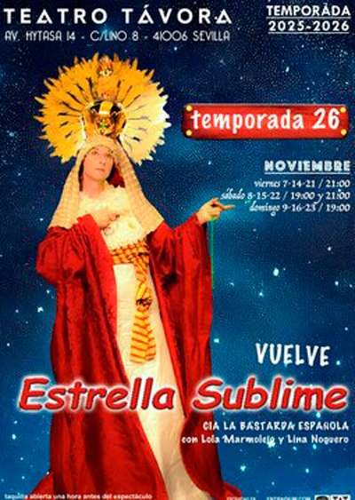Estrella Sublime (comedia) La bastarda Española Estrella Sublime (comedia) Evento concluido Sab 8 Nov 2025 19:00h Távora Teatro Abierto Sevilla Ver mapa de localización del lugar Estrella Sublime (comedia)Compañía: La bastarda Española