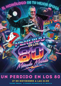 Los años 80 no se explican… se viven. Y Diego Sánchez lo sabe bien. En este monólogo cargado de nostalgia y humor, Diego nos lleva de vuelta a una época que marcó a toda una generación: el colegio, los juegos en la calle hasta que anochecía, las series que nos tenían pegados a la tele, las meriendas de bocata, las broncas de nuestras madres, la mili, las primeras fiestas y esas amistades que parecían eternas. Perdido en los 80s, es un viaje directo a nuestra memoria colectiva, donde los recuerdos más cotidianos se transforman en carcajadas. Un espectáculo en el que nostalgia y comedia se fusionan para revivir una década irrepetible, con ritmo ágil, mucha interacción y momentos en los que el público no solo se ríe… también canta, baila y se emociona.