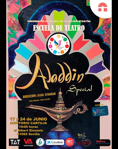 La Asociación Colibrí tiene el honor de presentar una adaptación inclusiva del clásico musical Aladdín, protagonizada por chicos y chicas con discapacidad intelectual. Esta puesta en escena, que se representará durante el mes de junio, reimagina la mágica historia ambientada en Agrabah (ciudad ficticia), destacando los valores universales que la película transmite: la amistad, la honestidad, el respeto por la diversidad, el poder de los sueños y la importancia de ser uno mismo.